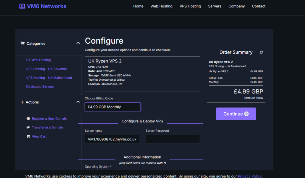 VM6,国外商家,主要提供英国虚拟主机、VPS、独立服务器等,VPS数据中心为英国。下面是英国Maidenhead的KVM VPS,特色是不限流量,CPU为Ryzen 9 5900x。