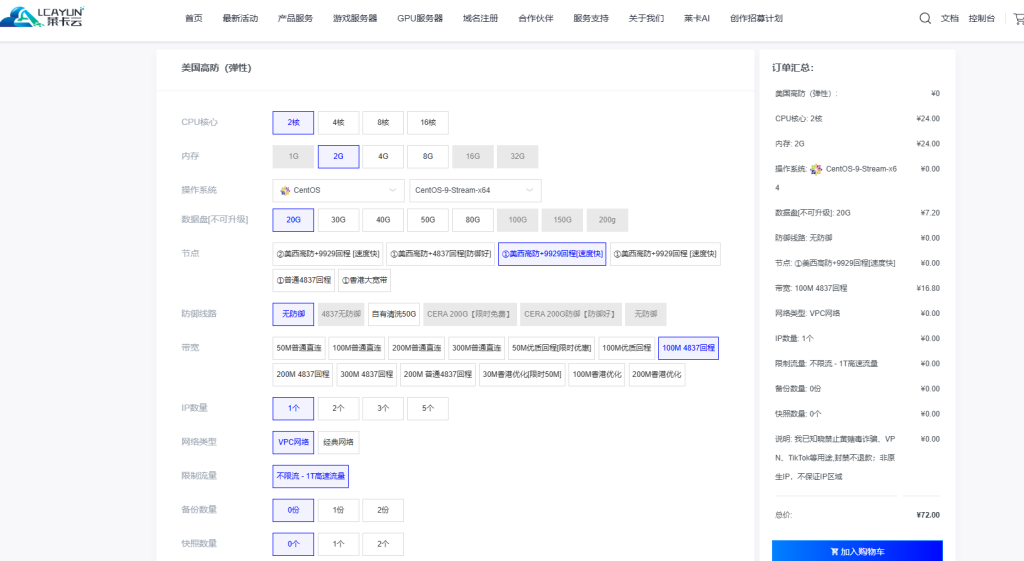 购买链接:https://www.lcayun.com/cart?action=configureproduct&pid=323