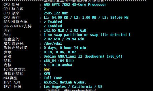 CPU采用的是AMD EPYC 7K62 基本频率是2.60GHz
