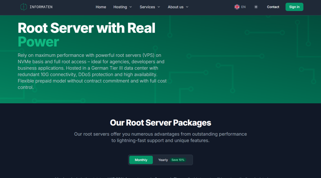 Informaten,国外商家,主要提供虚拟主机、VPS、独立服务器等。现在有两款特价KVM VPS,虽然标的Root Server,但是CPU是共享。免费+3.2 Tbit/s DDoS防护,3个免费备份。