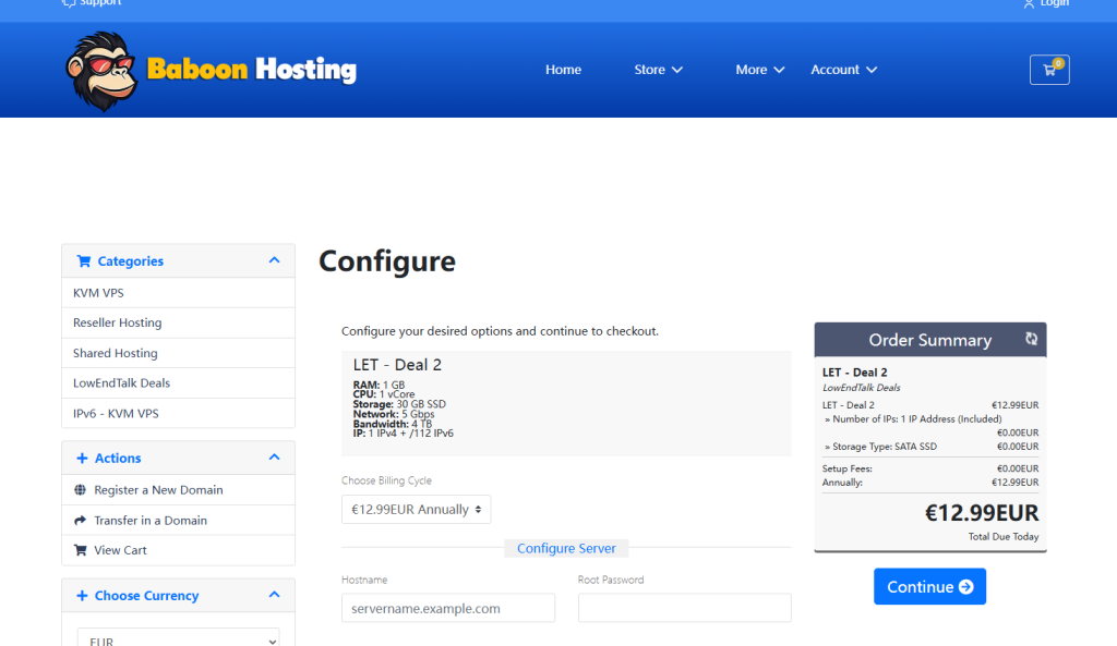 BaboonHosting:荷兰VPS仅需€3.55/月/2核/4GB内存/75GB SSD空间/4TB流量/5Gpbs端口/KVM
