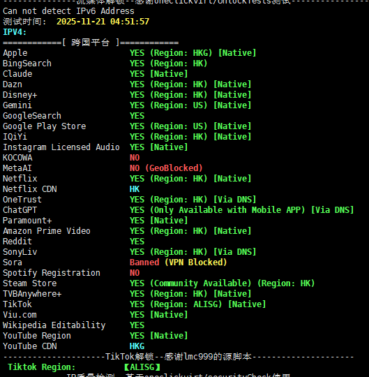 流媒体解锁测试