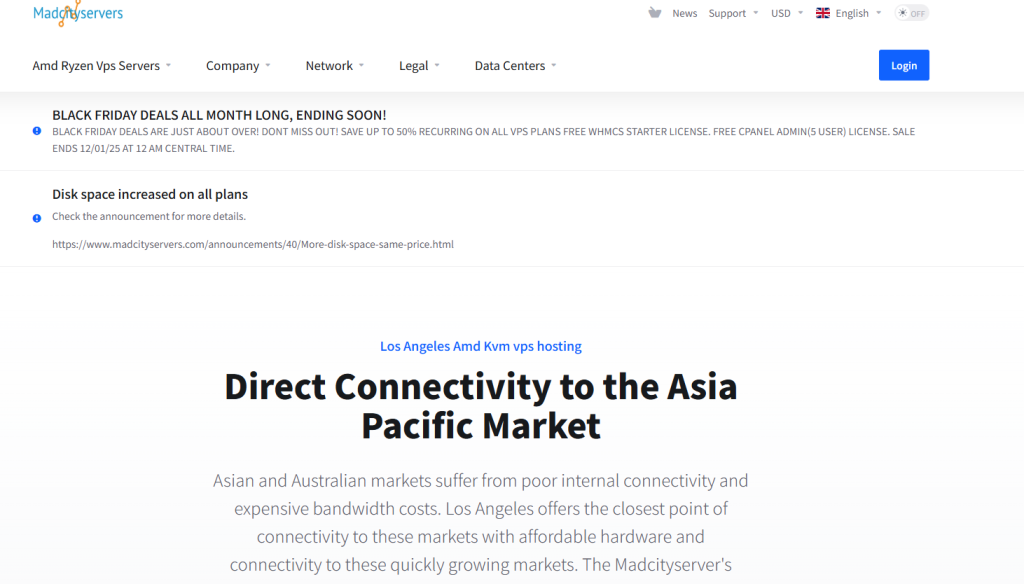 Madcityservers,国外商家,主要提供KVM VPS,数据中心有洛杉矶、芝加哥、迈阿密等,处理器为AMD Ryzen 3900X 或 5950x 或 7950x。特色是1Gbps端口、不限流量。