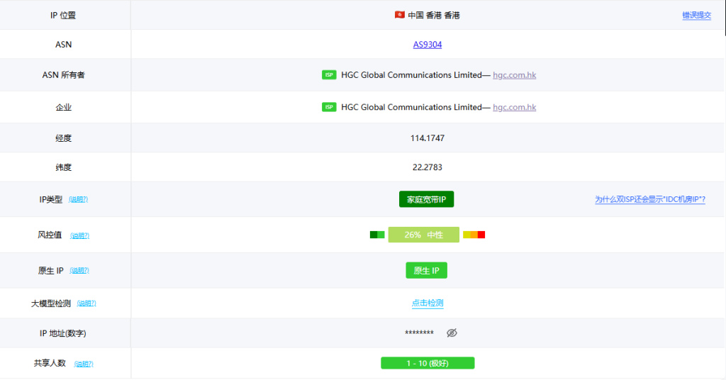 最近YINNET又新上线了香港双ISP家庭IP的产品,IP解除跟纯净度非常干净,IP属于HGC环球全域电讯的香港当地运营商,最低配月付$10,配置为1核/1G/10GB SSD/200Mbps@1T流量。接下来就给大家带来详细测评,看看IP的质量如何。