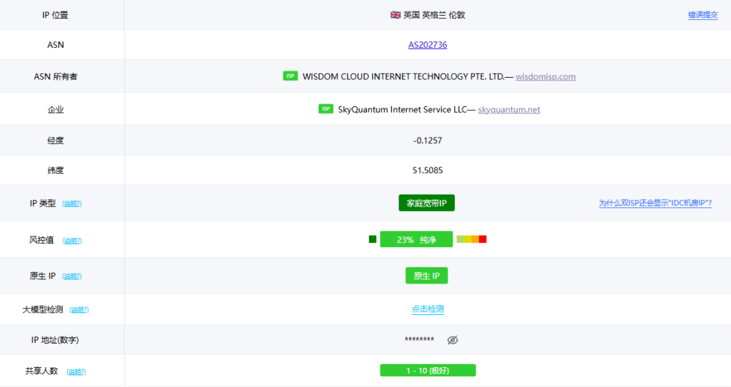 YINNET荫云新上线了英国双ISP家庭IP的产品,IP解锁跟纯净度都是比较好的,,最低配月付$10,配置为1核/1G/10GB SSD/200Mbps@1T流量。接下来就给大家带来详细测评,看看IP的质量如何。