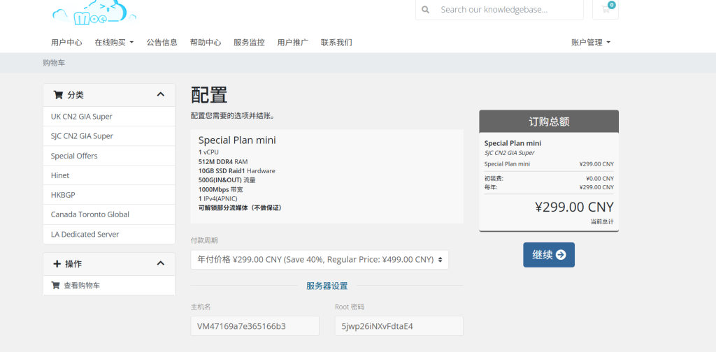 购买链接(圣何塞CN2 GIA,499元/年)