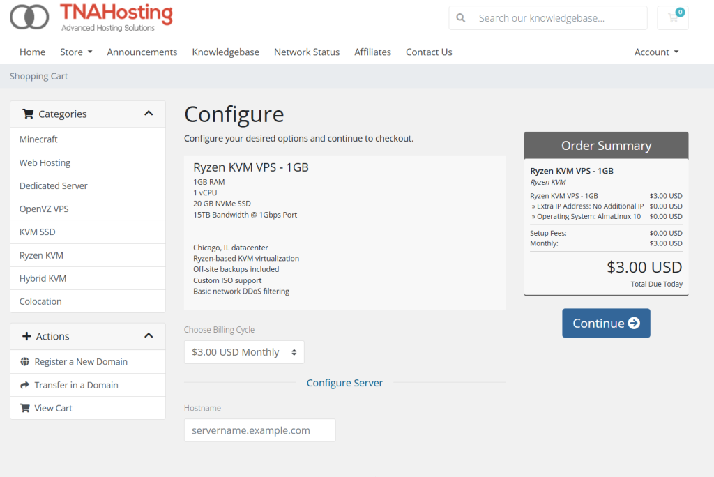 TNAHosting,美国主机商,数据中心位于芝加哥,稳定商家。现在AMD Ryzen 5900X处理器的KVM VPS有大的优惠,性价比不错。支持PayPal付款。